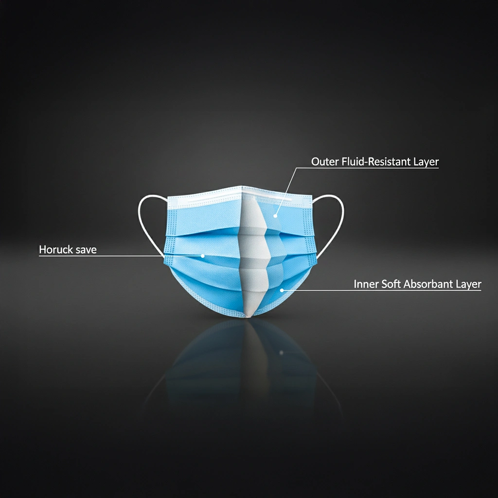 This is a standard 3-Ply Face Mask designed to create a physical barrier, minimizing the projection and transmission of large droplets and respiratory secretions. It features a multi-layered construction, utilizing non-woven fabric for comfort and a central melt-blown layer for filtration. Lightweight and comfortable, the mask is secured by elastic ear loops and includes an adjustable nose clip for a snugger fit over the nose. This cost-effective solution is medically approved and ideal for general public use, healthcare, food preparation, and other environments requiring basic infection control.