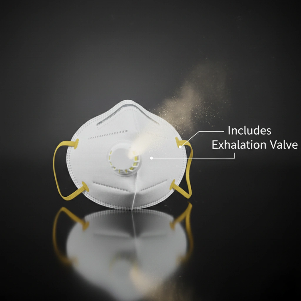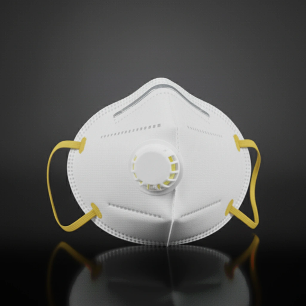 This cup-shaped respirator is a high-grade N95 filtering facepiece, designed to provide reliable worker protection against solid and non-oil-based liquid particulates. The rigid, durable outer shell resists collapse, making it suitable for long periods of wear in industrial, construction, and healthcare environments. It features a prominently located exhalation valve, which is crucial for reducing heat and moisture buildup inside the facepiece for enhanced user comfort. The mask’s contoured design and secure head straps ensure a tight seal is maintained across a broad range of face shapes.